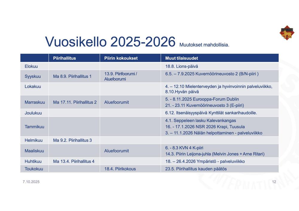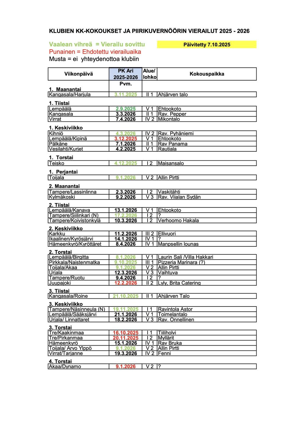 Kauden 2025_26 ensimmäinen piirin tiedote (09/2025)