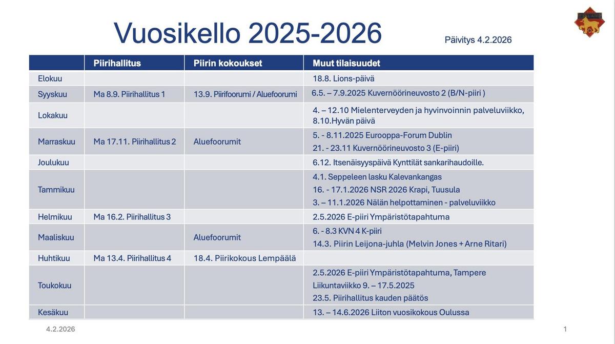 Kauden 2025_26 ensimmäinen piirin tiedote (09/2025)